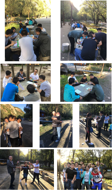 待大家順利完成攀登水長(zhǎng)城之后,在沒(méi)有提前通知的前提下,部門組織了一個(gè)團(tuán)隊(duì)創(chuàng)意PK,整體團(tuán)隊(duì)中,隨機(jī)打亂分為兩組,每組將一張A4紙?jiān)诓凰簲嗟那疤嵯?,撕成最大的圈,把本組內(nèi)所有人套在一起,套的過(guò)程 ,要求大家緊密擁抱在一起,這個(gè)活動(dòng)意在考驗(yàn)大家團(tuán)隊(duì)溝通協(xié)作,集中創(chuàng)意展現(xiàn)的目的,最終我們完美達(dá)成了本環(huán)節(jié)的目標(biāo)。
